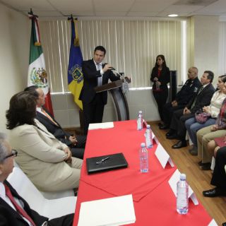 Allí, dentro de una pequeña sala de juntas, el representante del Poder Judicial pidió al Ejecutivo del Estado que considerara la posibilidad de incrementar los recursos de operación y un cambio de sede para el Tribunal, pues muchos de los archivos en revisión se encuentran en el piso debido a que las instalaciones están rebasadas.