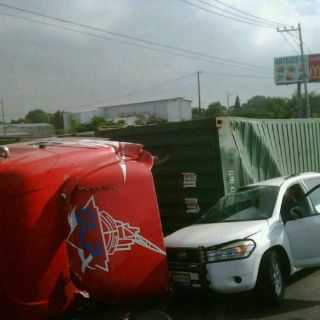 Santiago Chávez Guzmán, chofer del tráiler cargado con accesorios de baño, arribó del Estado de Guanajuato para entregar la carga en una bodega de Santa Anita, en Tlajomulco de Zúñiga. Sin embargo, cuando tomó la salida de Periférico Sur, por López Mateos, hacia Tlajomulco de Zúñiga, el eje trasero del carguero tronó, provocando que la carga se ladeara y quedara recostado en su lado izquierdo.