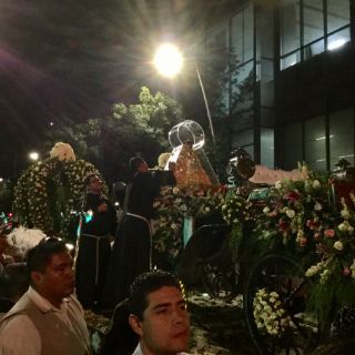 GUADALAJARA, JALISCO (12/OCT/2016).- Con un dron y un helicóptero revoloteándole encima en la oscuridad de las seis de la mañana, decenas de cámaras de televisión y celulares grabándola, aplausos, gritos de ¡Viva La Generala!, escolta militar armada y acompañamiento de banda de música, salió de la Basílica la Virgen de Zapopan este día 12, su día y -coincidentemente- el día de la llegada de Colón a América.