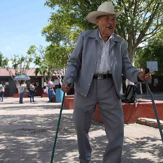 A su paso, el trayecto parece ser eterno, pero ahí estuvo, se presentó con sombrero, botas, traje y un par de bastones que lo acompañan por doquier. Tuvo trato preferencial en la casilla por ser de la tercera edad y de inmediato emitió su voto en una casilla instalada en uno de los salones de la escuela que lució con poco movimiento hasta antes del medio día. Después, salió, caminó un poco y encontró bajo un árbol un espacio para tomar un poco de aire antes de emprender su regreso a casa.