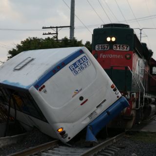 El vehículo de la ruta 640 se impacta contra el convoy del ferrocarril al cruce de Avenida López Mateos e Inglaterra