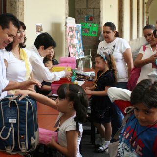 En el patio central del Palacio de Justicia se entregaron mochilas, cuadernos, lápices de colores, juegos de geometría, lápices, borradores, pegamento, crayones, plastilina y todo lo que se requiere para el regreso a clases.