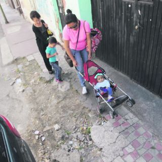 Las malas condiciones en las que se encuentran las áreas peatonales del barrio la obligan a empujar la carriola con su bebé sobre el arroyo vehicular, exponiéndose al paso de los vehículos: “Están deterioradas e incaminables. No se puede andar con las carriolas, ni en silla de ruedas”, explica.