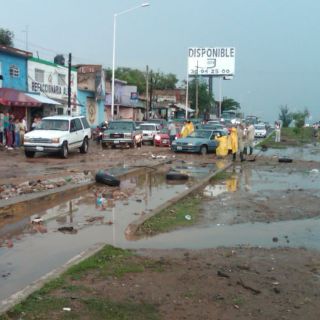 Con maquinaria, escobas, palas, recogedores y hasta cubetas, personal de Bomberos y Protección Civil de San Pedro Tlaquepaque, junto con vecinos de la zona afectada, entre ellos también algunos niños, inició con la remoción de los escombros, lodo, piedras y hasta llantas, todo lo que a su paso, el agua se llevó.