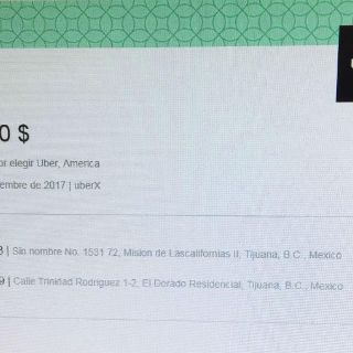 El segundo llegó a las 21:57. La plataforma registró otro traslado en la capital de Baja California que también comenzó en la calle Sin nombre 1531 y terminó en Avenida de los Insurgentes 18396, en Los Álamos. Por este servicio le cobraron 61.20 pesos.
