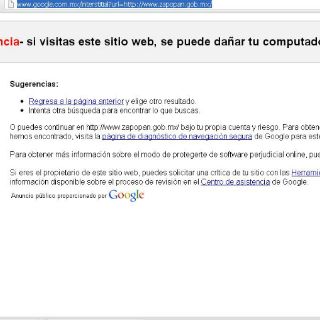 GUADALAJARA, JALISCO (26/JUN/2013).- La página electrónica del Ayuntamiento de Zapopan no sirve desde ayer. “Este sitio es una web atacante!”, es la alerta que aparece en el momento que se pretende ingresar a www.zapopan.gob.mx