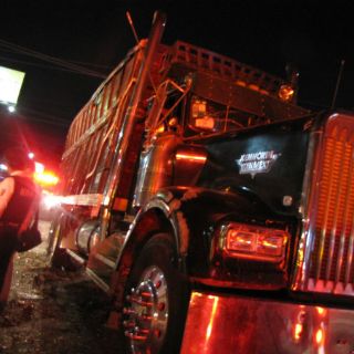 GUADALAJARA, JALISCO (29/MAR/2013).- La noche de este jueves se volcó un tráiler en el Periférico a la altura de la calle de Juan de La Barrera, en el carril que va de oriente a Poniente, lo que provocó ligero tráfico vehicular y apresuradas labores para volver el camión en sus ruedas tras rumores de que habían quedado aplastadas una señora y una niña.