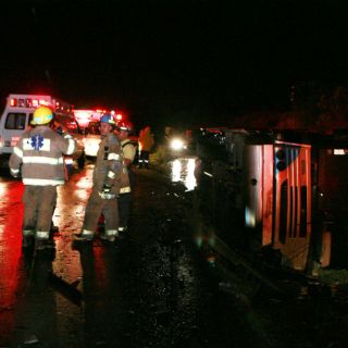 Un autobús de pasajeros vuelca sobre la carretera Oaxaca-Puerto Escondido