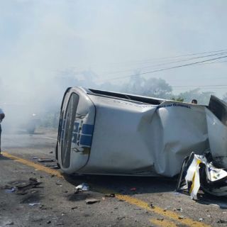 Un tráiler invadió el carril contrario y chocó frente a una unidad de pasajeros en la carretera Villahermosa-Frontera
