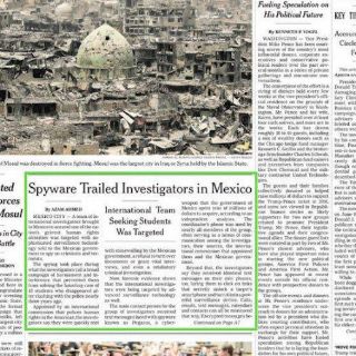 CIUDAD DE MÉXICO (10/JUL/2017).- Organizaciones que forman el colectivo #GobiernoEspía alertaron sobre las posibles violaciones al derecho internacional, luego de que el periódico estadounidense The New York Times confirmara intentos de ataque con el malware Pegasus contra miembros del Grupo Interdisciplinario de Expertos Independientes (GIEI), encargados de ampliar las investigaciones de la desaparición de los 43 normalistas de Ayotzinapa.