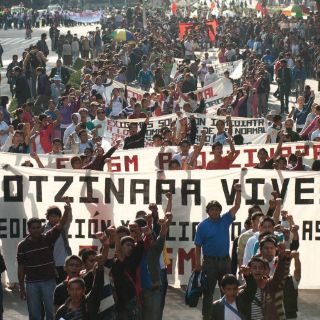Luego de una marcha que partió de la glorieta del Angel de la Independencia, los estudiantes de Guerrero, Oaxaca, Michoacán, Morelos, Zacatecas y de otros estados, recorrieron Paseo de la Reforma hasta Bucareli, donde está la sede de la dependencia federal.