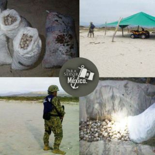 En una segunda acción, durante un recorrido de patrullaje y vigilancia terrestre en inmediaciones de la playa "Morro Ayuta" en Oaxaca, personal naval e Inspectores Federales del Medio Ambiente avistaron en la maleza ocho costales, los cuales contenían en su interior diez mil huevos.