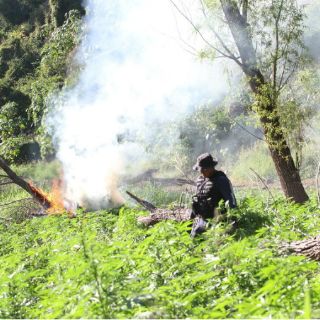 En el lugar fueron aseguradas e incineradas nueve mil 600 plantas de marihuana, sembradas en una superficie de mil 200 metros cuadrados, con una densidad aproximada de ocho plantas por metro cuadrado y de una altura de 1.70 centímetros de altura cada una.