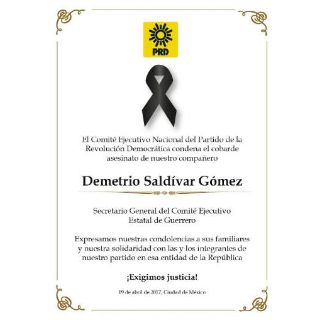 CIUDAD DE MÉXICO (20/ABR/2017).- La Fiscalía General del Estado de Guerrero (FGE) informó que al secretario general del PRD en Guerrero, Demetrio Saldívar Gómez, lo asesinaron dos hombres que después del crimen huyeron hacia el municipio de Tixtla.
