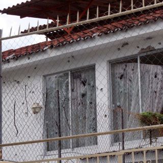 La vivienda de dos niveles con un portón blanco quedó dañada por los impactos de más de 50 balazos de diversos calibres M-5, Ar-15 y Ak-47, 9 milímetros y 38 Súper.