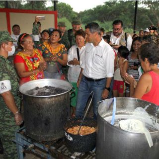 Murat Hinojosa informó que se cuenta con el abasto suficiente de agua, alimentación y víveres para suministrar a las familias damnificadas a través de la instalación de 40 cocinas y 34 comedores comunitarios en la región del Istmo de Tehuantepec.
