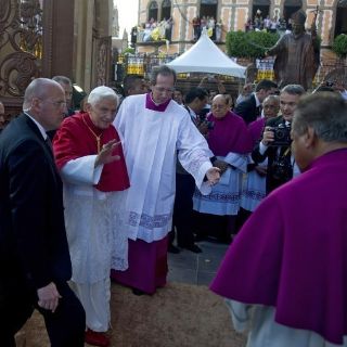 Benedicto XVI fue recibido por el presidente de la Conferencia Episcopal Mexicana y arzobispo de Tlalnepantla, Carlos Aguiar Retes, quien se refirió a los frutos que ha dado la V Conferencia General del Episcopado Latinoamericano (Celam), reunida en 2007 en Aparecida (Brasil), que fue inaugurada por el Pontífice.