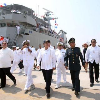 ''Aquí mismo, en este puerto, los marinos arriesgan su vida para brindar seguridad, paz y tranquilidad a los mexicanos'', subrayó; y dejó en claro que gracias al valor de los marinos se han logrado capturas de muchos de los más peligrosos delincuentes del país.