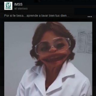 La publicación, compartida por el IMSS en Twitter y Facebook, está acompañada con la frase "Por si te besan… aprende a lavar bien tus dientes".
