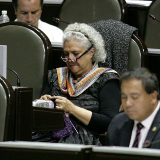 Captan a diputada Laura Esquivel tejiendo durante sesión