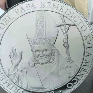 Tiene la leyenda “Primera Visita del Papa Benedicto XVI a México 2012”.