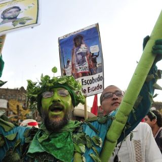 "Somos juntos mucho más fuertes que los señores de la muerte del crimen organizado ilegal y del crimen organizado legal (en referencia a políticos corruptos)", dijo Sicilia en el Zócalo ante cientos de personas, entre los que había miembros del Sindicato Mexicano de Electricistas y de grupos populares.