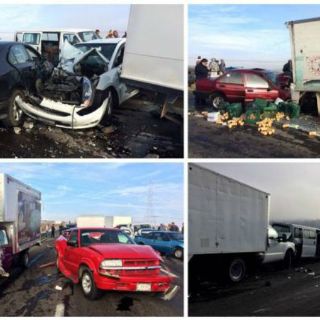 AGUASCALIENTES, AGUASCALIENTES (28/DIC/2015).- Esta mañana de lunes, un choque múltiple por alcance entre más de 30 vehículos en la Carretera Federal 70 Oriente tramo Aguascalientes-San Luis Potosí, dejó como saldo 20 lesionados.