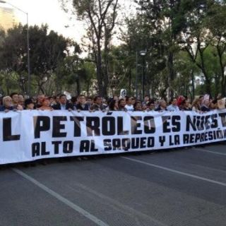 Los inconformes además piden, por medio de pancartas y cartulinas, que no se privatice el petróleo, mientras que otros exigen la renuncia de Peña Nieto.