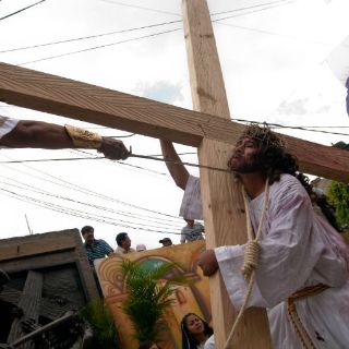 CIUDAD DE MÉXICO (06/ABR/2012).- Camino al Gólgota por las calles de Jerusalén para ser crucificado, Jesús se encontró entre la muchedumbre que observaba la procesión y tras cargar la pesada cruz de madera se consumieron sus últimas fuerzas.