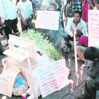 OAXACA (29/DIC/2012).- El cuerpo de un bebé fue velado en el plantón de los indígenas triquis desplazados de San Juan y San Miguel Copala, ubicado en la calle Flores Magón y las Casas. El niño falleció ayer en el Hospital Civil “Doctor Aurelio Valdivieso”, su estado físico presentaba gravidez, informó el padre del bebé, Lázaro Hernández. Explicó que nació un mes antes de tiempo, en el momento del desalojo del palacio de gobierno, del 23 de diciembre. La líder de los desplazados de San Juan Copala, Mariana Flores López, dijo que en el plantón hay otras cuatro mujeres embarazadas.