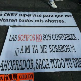 Con pancartas demandan la devolución de sus ahorros de forma completa