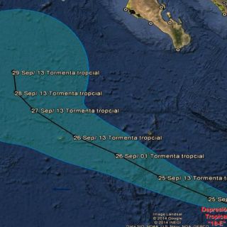 CIUDAD DE MÉXICO (24/SEP/2014).- La Depresión Tropical 18-E en el Océano Pacífico, se localizó a 520 kilómetros al suroeste de Manzanillo,