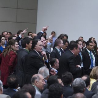 Los miembros de la Coordinadora Nacional de Trabajadores de la Educación (CNTE) también bloquearon la sede del Senado, por lo que los legisladores también tuvieron que irse a sesionar en el Centro Banamex, y sólo estaban separados de los diputados por una pared de tabla-roca.