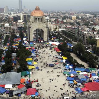 En el plantón del Monumento a la Revolución se agruparon los maestros por regiones, sectores, direcciones y delegaciones para realizar la consulta en torno a tres preguntas: