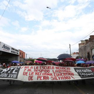 "¡No a la evaluación punitiva y perversa!, ¡Basta de la barbarie!", se leía en las mantas. Al grito de: "¡De norte a sur, de este a oeste, ganaremos esta lucha, cueste lo que cueste!", avanzaron hasta llegar a Palacio de Gobierno, en donde hicieron uso del micrófono algunos líderes y posteriormente, una comisión se dirigió al Congreso local para entregar un documento.