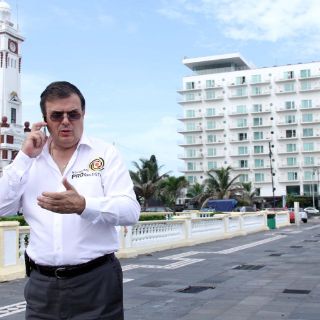 Marcelo Ebrard recorrió el Malecón de Veracruz saludando a taxistas, vendedores ambulantes y comerciantes de ese centro turístico.