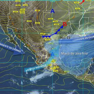 La Conagua pronosticó que para este jueves el frente frío 20 mostrará un retroceso que lo mantendrá extendido desde el centro de Florida hasta el sur del Golfo de México.