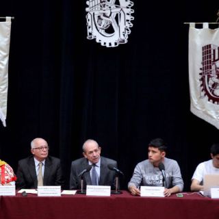 Tal como acordaron, integrantes de la Asamblea y el director del IPN, Enrique Fernández, en la mesa de diálogo.