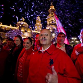 En la Plaza Melchor Ocampo, el candidato priista, Fausto Vallejo, en donde hizo un llamado a la reconciliación y anunció una ligera ventaja sobre de su rival más cercana, la panista Luisa María Calderón.