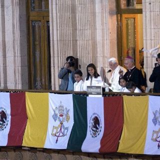 Tras haber sostenido una reunión privada con el presidente de México, Felipe Calderón Hinojosa, el líder católico se asomó hacia la plaza.