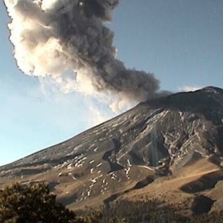 Popocatépetl exhaló una fumarola de aproximadamente un kilómetro.