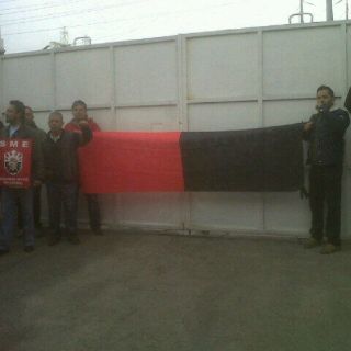 En las instalaciones ubicadas en Alcanfores, Naucalpan, cerca de 50 personas realizaron una manifestación en todas las puertas de acceso y en la principal, de manera simbólica, colocaron banderas de huelga.