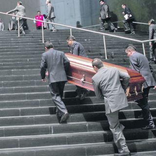 Junto al féretro de Lujambio había una gran fotografía, que su esposa no paraba de acariciar.