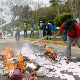 El lunes pasado fueron quemadas por organizaciones integradas en el Movimiento Popular Guerrerense (MPG), entre éstas la Coordinadora Estatal de Trabajadores de la Educación Guerrero (CETEG), 88 de 181 paquetes del distrito electoral 28 con sede en Tlapa. La papelería correspondía a la elección de gobernador, alcaldes y diputados locales de Metlatónoc, Cochoapa El Grande y Alzozauca.