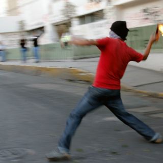 El grupo de encapuchados, que arribó en cuatro autobuses, arrojó petardos y piedras a las instalaciones militares que se ubican sobre el bulevar Chilpancingo.