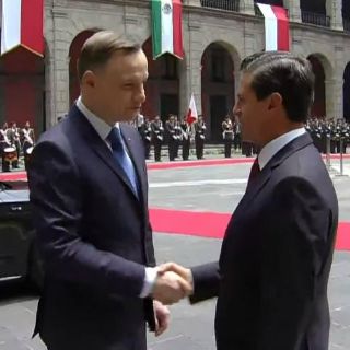 CIUDAD DE MÉXICO (24/ABR/20117).- El Presidente Enrique Peña Nieto encabezó en Palacio Nacional la ceremonia oficial de bienvenida al presidente de Polonia, Andrzej Duda, quien realiza una visita de Estado al país.