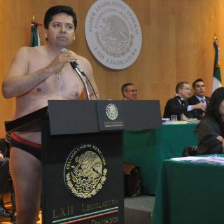 Y es que al fijar su postura, el perredista Antonio García Conejo comenzó a quitarse la ropa, argumentando que así como priistas y panistas están despojando al país de sus recursos, él también se despojaría de lo que llevaba puesto.