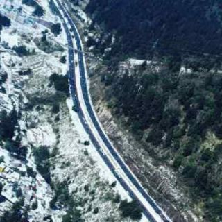 Eruviel Ávila Villegas difundió una toma aérea de la situación que prevalece en la carretera México - Toluca tras la intensa granizada de ayer miércoles.