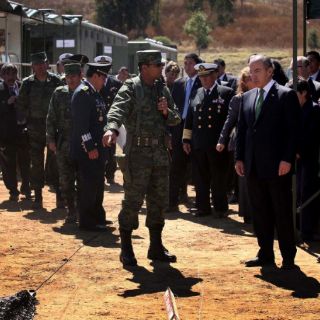 Durante la ceremonia en la que se encuentra el presidente Felipe Calderón y el gobernador del Estado de México, Eruviel Ávila, el secretario rindió un homenaje a los elementos que han perdido la vida a manos del crimen organizado.