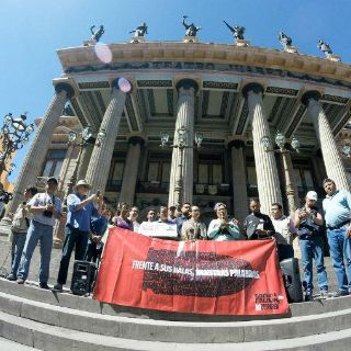 "No más agresiones a periodistas, ni un asesinato más", clamaron al menos 40 comunicadores en las escalinatas del Teatro Juárez de esta capital.